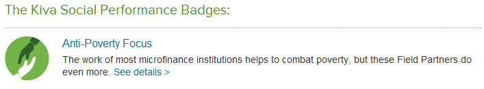 A look at Kiva’s Field Partners page shows that efforts are being made to highlight Social Performance Badges. But we also see “Delinquency Rate” and “Default Rate” in the table. This may push lenders toward funding MFIs with many badges and low default rates, when perhaps the ones that show great promise and potential growth are not quite there yet with badges, and are meanwhile taking on greater amounts of risk. Based on the three MFIs below, one would be quite inclined to choose VisionFund over the other two. This could lead to a reinforcing loop where the successful MFIs will continue being successful because they present attractive data.