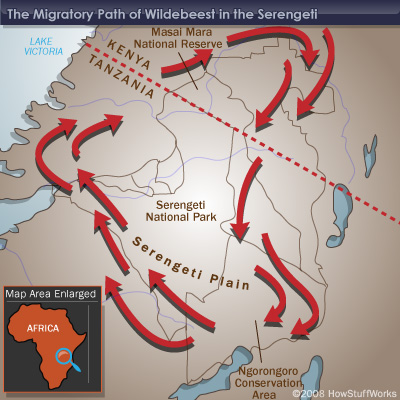 It is worth noting that once the cycle of migration begins, it is difficult to stop. If the wildebeests decided the life of the wanderer was not for them and stopped in their tracks, their effective carrying capacity would immediately drop. They would deplete their local food resources and the rate of death from starvation would soar until the herd was in balance with their available grazing fields. Even if they were happier in general when they could graze lazily in their hometown, their individual survival instincts will drive them to migrate on and on to satiate their hunger for grass.